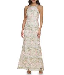 Elegant, detailed 3D halter neck gown with intricate embellishments.